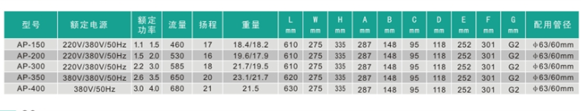 1:按照水力學原理設(shè)計的泵體,噪音小,運行寧靜泵體,法蘭,隔渣藍的材料為玻纖充填GF/PP,葉輪材料為玻纖充填聚苯醚。