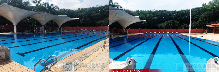 近日由我司廣州中鵬康體設備有限公司承建的廣州美術學院大學城校區游泳池水循環系統配套設備及安裝服務工程。室外用泳池工程配套設備,泳池采用混流式運行,水溫常溫:標準池面積約1250平方,水深1.6m~2.0m;平均水深1.8m,容積約2230立方;訓練池面積約312平方;水深1.1m~1.4m,平均水深1.25m;容積約390立方;循環周期5-7h;過濾流量:360立方/h;用電量:55kw。泳池設備包括有,循環過濾系統、水質凈化消毒系統、電控系統等。循環過濾器、消毒器、水下照明燈、水質監控系統、采用我司菲臣FUSSEN品牌的高品質循環水泵、過濾砂缸和泳池水下燈,投藥裝置是用意大利著名品牌Seke,全程監控水質情況,電氣系統包括泳池機房控制柜上樁及泳池水下燈具全部電線動力控制安裝,一流的技術有效的速率,項目已經順利完工正投入使用得到校方非常滿意認可。